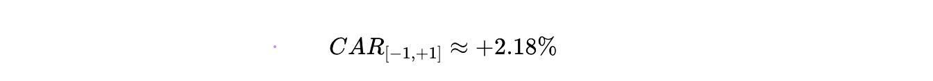 Where CAR is the cumulative abnormal return—the price movement that cannot be explained by broader market trends.